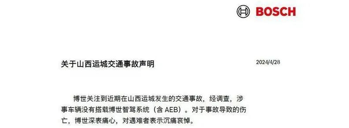 只是,博世也公开声明,否认涉事车辆采用了其智驾方案。
