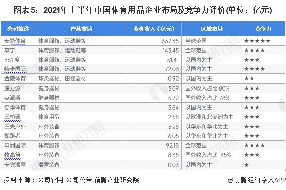 从布局区域来看,头部体育用品公司主要布局全球市场;从业务布局来看,绝大多数上市公司布局领域主要是体育服饰、运动鞋、健身器材、户外装备等。