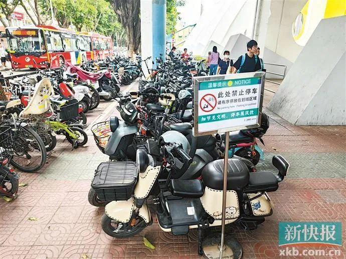 几个月前,市民许小姐搬到白云区同和街道白山社区居住,距离地铁站1.5公里,时常需要步行乘坐地铁的她感到十分不便,为此,她购入一辆电动自行车。她说:“对我来说,骑电动自行车换乘地铁,是最经济、快捷的。”然而,买车容易停车难,地铁同和站周边电动自行车扎堆停放乱象让她犯了难,“地铁口周边停放着密密麻麻的电动自行车,晚来了根本没位置停。”