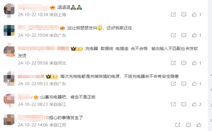 无独有偶,湖北一女子用充电器给手机充电时,充电线也发生了自燃。