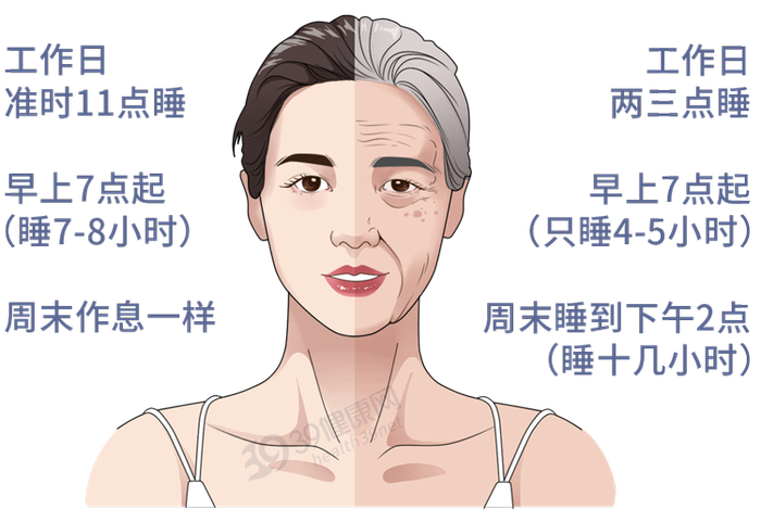 发表在《睡眠健康》上的一篇研究发现,比起睡眠规律的人,入睡时间差异大的人,生物年龄更老。