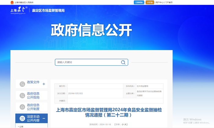 上海市嘉定区市场监督管理局2024年食品安全监督抽检情况通报(第二十二期)