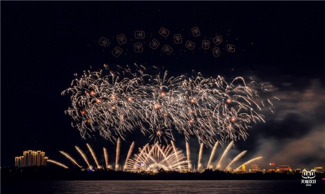 当烟花秀正式开场,每一轮创意烟花升空带来视觉震撼同时,还送上了来自天猫和品牌们的创意祝福。