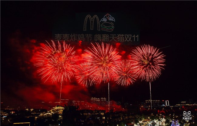 品牌定制烟花也紧跟着接力绽放,送上“天大的好心意”。海尔的“呼吸感”烟花给观众们留下了“海尔好空气,健康好呼吸”的深刻印象;波司登雪山造型烟花与品牌献上的“温暖”心意,形成了强烈的对比;麦当劳经典红黄配色烟花一出场,评论区直呼“看饿了”。创意结合品牌特色的烟花秀,让大家对“双11买品牌好物上天猫”有了更深刻的感知。