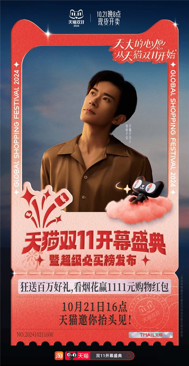 10月21日16:00,天猫双11开幕盛典全网开播,一上来就是“大场面”,开播即王炸。