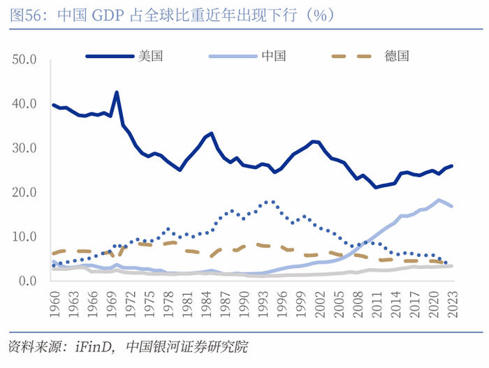 从长期发展来看,需要解决中长期内生增长动力不足问题,助力两个一百年目标顺利实现。十九大对“两个一百年奋斗目标”的战略部署提升到了一个新的历史高度,强调要在2035年基本实现社会主义现代化,2050年全面建成社会主义现代化强国。要实现这一宏伟目标,最为重要的经济发展目标就是,人均国内生产总值迈上新的大台阶,达到发达国家水平。但近年,多重因素影响下,中国GDP增速不断下行,中国在世界经济占比近年也有所下降。