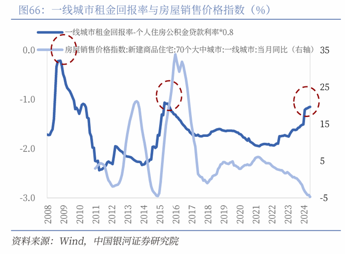 房地产下行周期,投资房地产回报率将随之下行,已不能成为居民财富增值的配置方向。能观察到从2020年起,居民的住宅投资回报已低于融资成本,无法实现正收益。