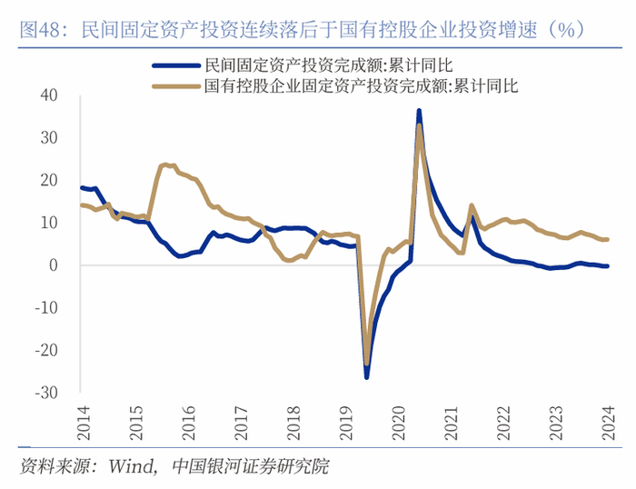从投资数据来看,1-9月民间固定资产增速降至-0.2%,同期国有控股企业投资增速为6.1%。2018年以来,民间固定资产投资占全部投资的比重开始趋势性下滑。