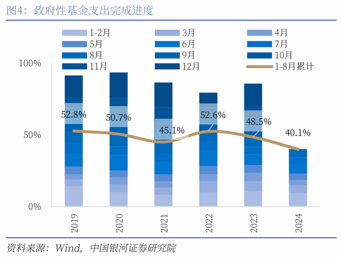 四是收支缺口压力下非税收入快速增长,或将影响收入结构及营商环境。与税收收入和土地收入形成显著对比的是,今年年初以来非税收入增速持续提升,1-8月份累计增速为11.7%,大幅高于年初预算目标的1.8%(对应全年非税收入规模为3.62万亿元)。而非税收入高增向来是经济增长的反向指标,表明地方政策财力压力加大,继而被迫提升国有资本、国有资源收入,加大罚没收入征管力度。长期来看或对企业营商环境造成负面影响,以上现象亟待系统性扭转。