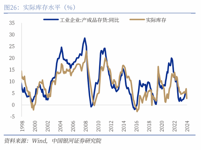 通过对历史上8轮PPI底部反弹的复盘,可以看出,此轮PPI同比反弹比1998年和2012年两轮走势更弱,有效需求不足,实际库存水平不低,物价缺乏上涨动力。