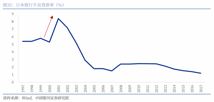 此外,银行体系在这一过程中也受到了巨大冲击。由于大量企业出现资不抵债的情况,企业破产数量增多,叠加高负债企业由于资产大幅缩水不能还债,银行不良贷款增加。1997年银行不良贷款率为5.4%,1999年升至9.8%。为了应对坏账,银行收紧了信贷标准,导致企业融资更加困难,特别是中小企业首当其冲,陷入资金匮乏、无法维持正常经营的困境,信贷紧缩进一步抑制了经济的复苏能力,企业的投资意愿和个人的消费能力均大幅下降,经济陷入长期低迷。