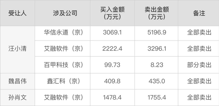具体来看,汪小清涉及违规减持了包括艾融软件在内的三家公司股份,买卖时间在9月27日至10月8日;孙肖文亦涉及违规减持艾融软件,买入和卖出时间为10月8日和9日。