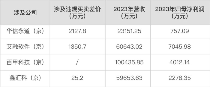 其中,艾融软件涉及到的差价,约占公司2023年归母净利润的20%;华信永道涉及到的差价,更是约为公司上年归母净利润的3倍。