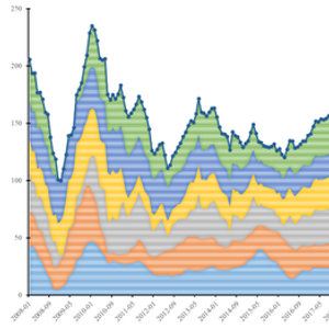注:图一为分市场指数堆积柱状图,配有总指数拟合线,以2008年1月至2024年9月的最低点(100)为基准