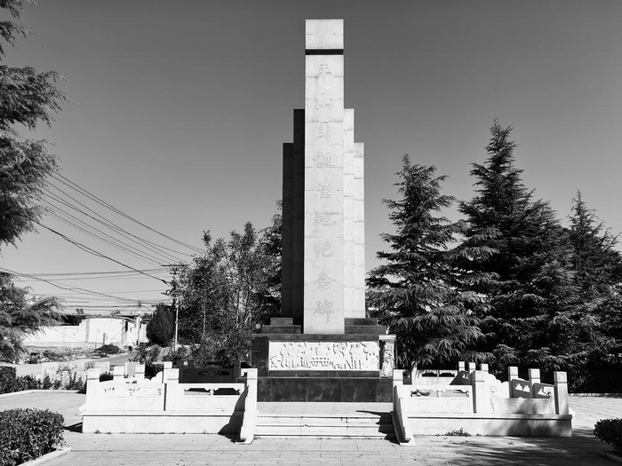 如今,村里文化广场上矗立着一座“平山团诞生地纪念碑”,石碑高9.08米,宽2.2米,正面镌刻着“平山团诞生地纪念碑”九个金色大字,背面为平山团简介。底座的前后两面刻有浮雕,栩栩如生地再现了当年平山青年踊跃参加平山团和平山团战斗的场面。
