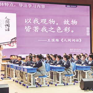 第八届“圣陶杯”全国中青年教师教学课堂大赛上,南宁市教师覃婕执教《紫藤萝瀑布》。 (董小莹 摄)