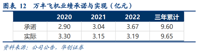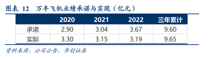 注:飞机工业2020-22年实际实现扣非归母净利为3.3、3.15及3.19亿元,三年累积实现 9.65亿元,超过利润承诺约定的三年累积9.6亿元。
