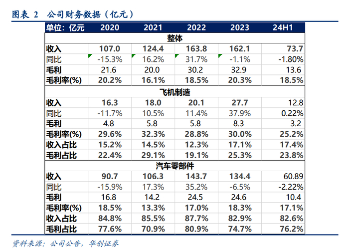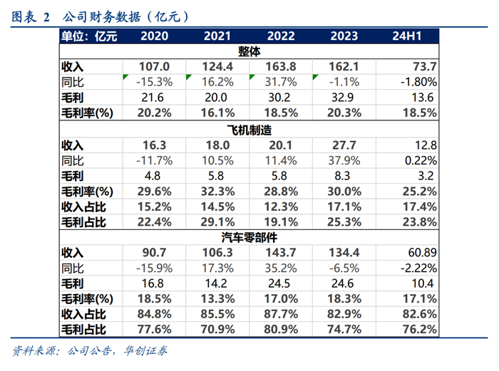 24H1公司收入73.7亿,其中汽车金属部件业务收入60.9亿,飞机制造业务收入12.8亿。