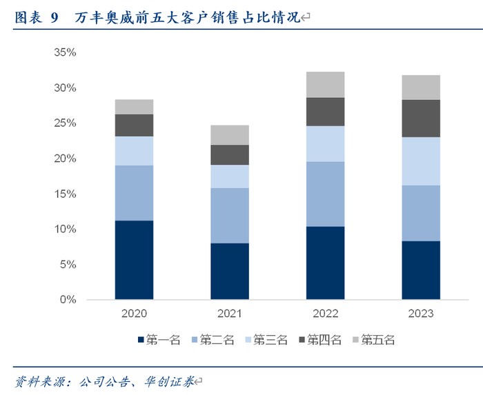 公司在主要客户深耕多年,粘性不断上升。公司主要客户包括奔驰、宝马、本田、保时捷、奥迪、雅马哈、铃木等,并通过已有客户导入其他产品,粘性不断提升。CR5占比由2020年的28%增长至2023年的32%。