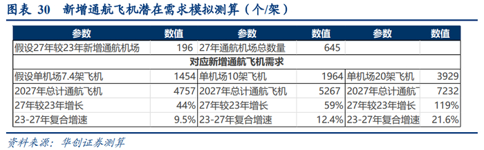 我们预计27年较23年新增196座通航机场,总数量将达到645座,23-27年复合增速9.5%。