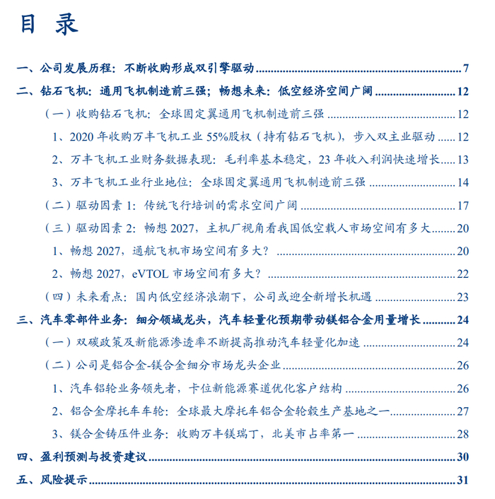 具体内容详见华创证券研究所2024年10月22日发布的报告《万丰奥威(002085)深度研究报告:低空经济浪潮下预期钻石飞机品牌核心受益,轻量化趋势下汽车部件业务共建双轮驱动》