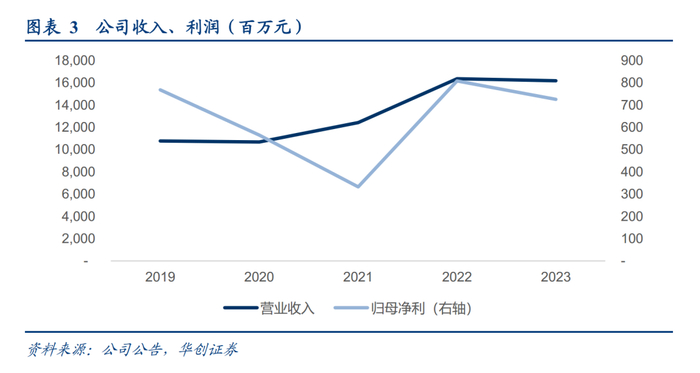 2021-23收入分别为28、46、37亿,2023年受镁价波动影响导致下滑19%,净利润分别为1、4.4、4亿元,23年净利率11%。