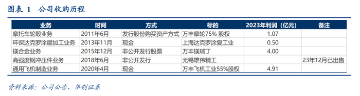 镁合金业务:2015年12月,以非公开发行股票募集现金13.5亿元收购万丰镁瑞丁100% 股权,增加了轻量化镁合金业务。