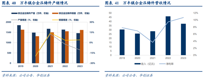 三、汽车零部件业务:细分领域龙头,汽车轻量化预期带动镁铝合金用量增长。