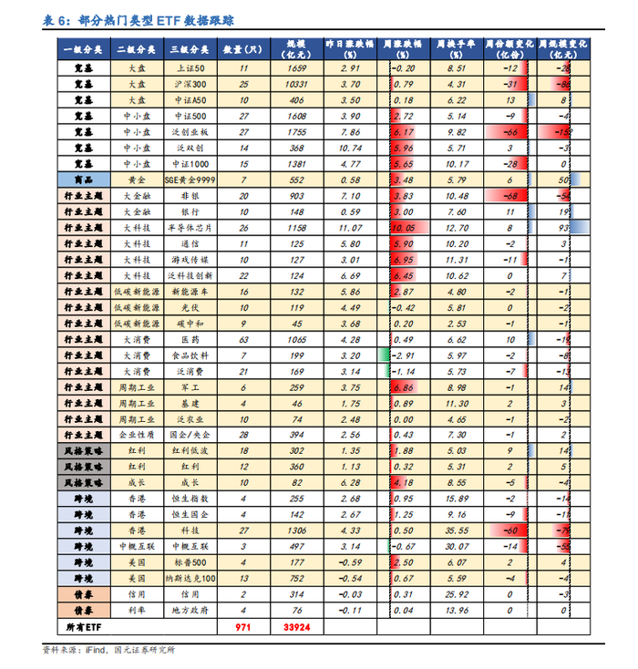 上周资金持续流出沪深 300 和创业板 ETF,行业主题 ETF 除非银大幅流出外资金变化不大