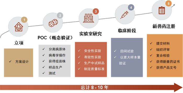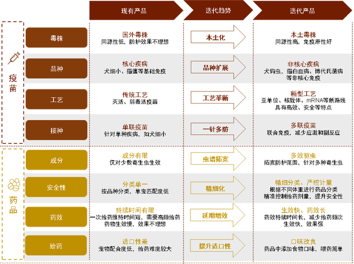 复盘国内外宠物动保产品演变迭代史,我们认为宠物疫苗及药品研发路径较为明确: