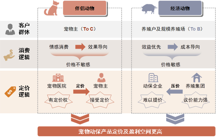 图表6:宠物与经济动物动保产品定价逻辑对比