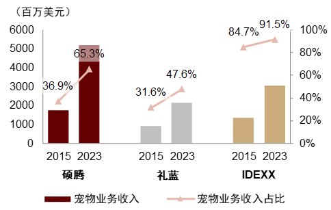 总体趋势:宠物业务比重持续增加,已成海外龙头主业