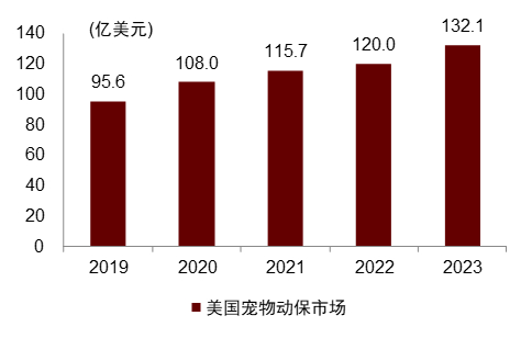 宠物动保增速领先,对标美国成熟市场空间广阔。当前我国宠物动保领域处于起步期,增速较快,但相距美国成熟市场仍有差距。1)从规模来看,据《中国宠物行业白皮书》及我们测算,2023年中国宠物动保市场(疫苗+药品)消费端总规模达347亿元,为宠物领域第三大赛道,占比宠物行业整体规模12.4%,仅次于宠物食品及宠物诊疗;海外对比来看,据Research and market数据,2023年美国宠物动保市场规模132亿美元,约合人民币931亿元,为同期中国市场的2.7倍;2)从增速来看,我们测算2017-2023年中国宠物动保市场复合增速达22.1%,而宠物食品、宠物用品及服务复合增速分别为11.9%、9.9%,宠物动保增长领先其他子领域;相比海外成熟市场来看,2019-2023年中国/美国宠物动保市场复合增速分别为10.3%/8.4%,中国市场仍处于早期成长阶段。综合来看,结合海外成熟市场现有规模,以及国内市场较高增速,我们认为国内宠物动保市场仍有较大增长潜力空间。