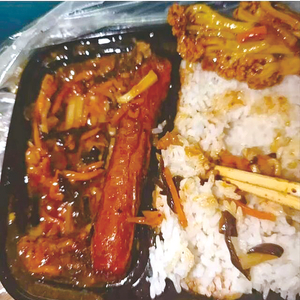 从店家宣传页上看,烤肉饭品种较多,店铺的图片都是统一背景,食物看起来让人非常有食欲。拿到手的烤肉饭实物,除了色泽形状,其他和图片总体看起来还算吻合。鱼香肉丝在配料上基本符合图片,但等到吃起来,才知道菜品远没有图片上那样诱人美味。