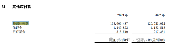 除此之外,比亚迪在2023年报中没有披露其他应付款中高达1636亿外部往来款项是啥东西。