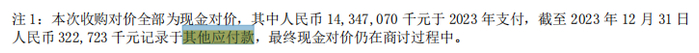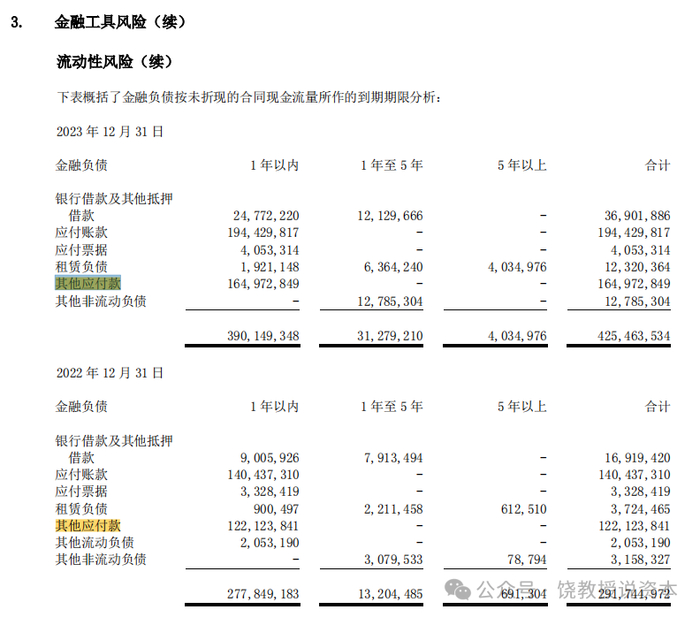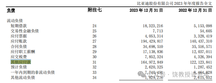 还找到一个附注有一笔应付收购款32.27亿在其他应付款中。比亚迪年报中称:以摊余成本计量的金融负债合计423,065,332千元(4231亿),主要列示于短期借款、应付票据、应付账款、其他应付款、租赁负债、长期借款与其他非流动负债