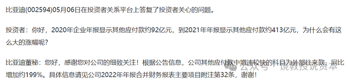 从比亚迪董秘回答以及比亚迪2022年报合并财报附注32条看,可以佐证外部往来款项很可能大部分是应付设备款。当然,这只是猜测,谁知道内情来告诉一声。