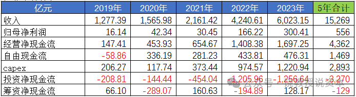 所以,从上表可以发现,比亚迪过去5年的capex高达2893亿,净利润合计只有556亿,但是筹资现金流居然5年累计是负数,说明比亚迪在高速扩张中,资金来源很大程度上对合作方供应商的占款,也可以理解为,比亚迪的供应商无息借款,将比亚迪抬到行业老大的位置上。