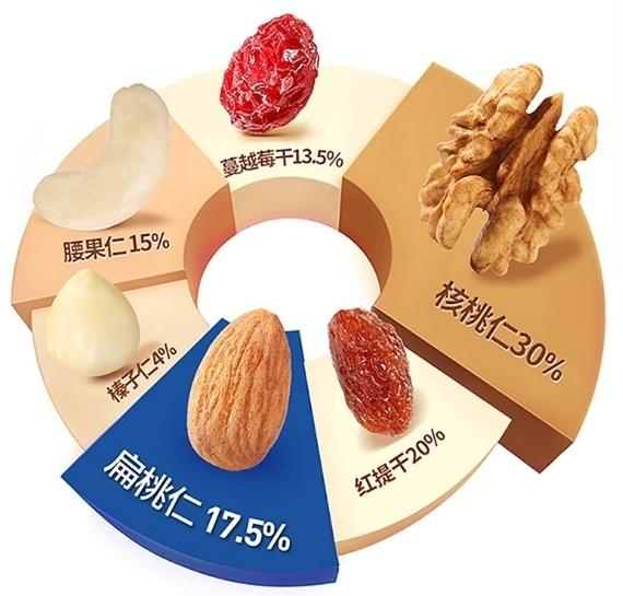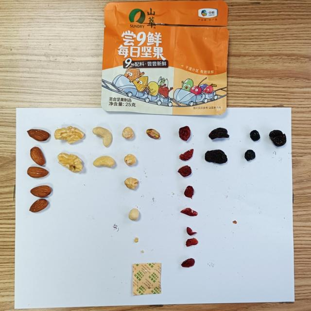那么,每小袋“每日坚果”产品里都有哪些坚果和果干?我们也给大家整理了下↓↓↓