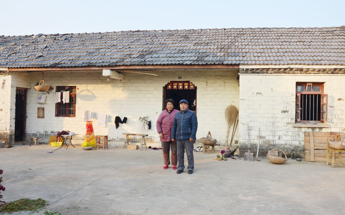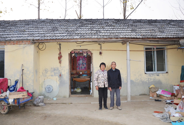 2019年3月3日,梁习珍(右)和老伴在搬家前在老屋门口合了影。(资料照片,李加友摄)