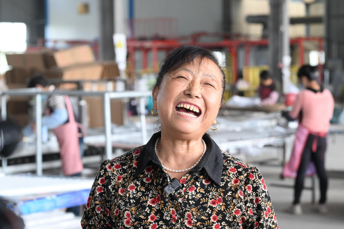 在家门口打工的孙成英,对每月能赚三四千元很满足。