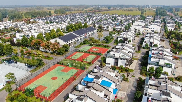 记者在湖畔旺屯看到,集中居住区的农房保留了中国传统乡村的风貌,采取新中式的徽派建筑风格,设计有从55平方米到230平方米五种大小不等的房型。除孙集村外,社区还吸纳了张坝、花园等10个村总计556户村民入住。