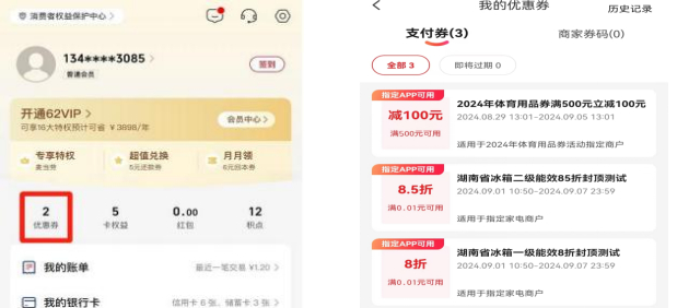 ⑺打开云闪付APP—我的—优惠券,可查看本人领取的消费券品类。