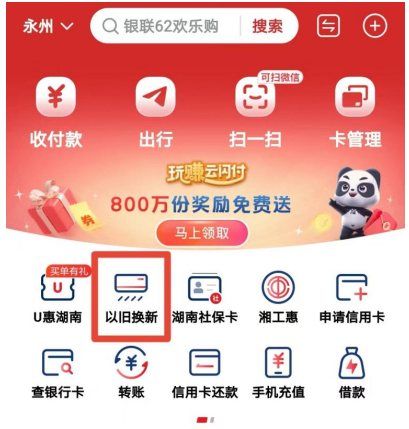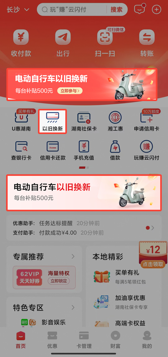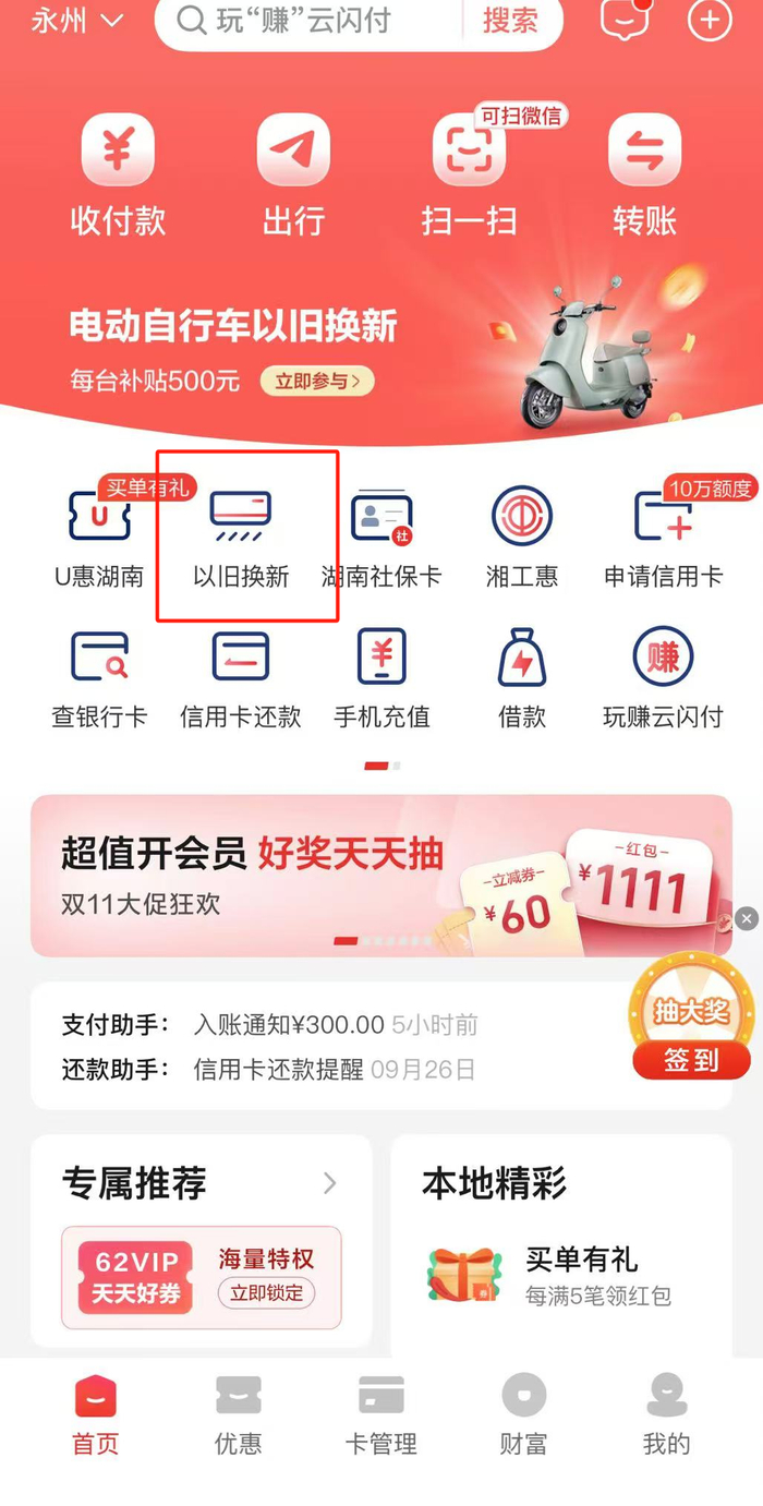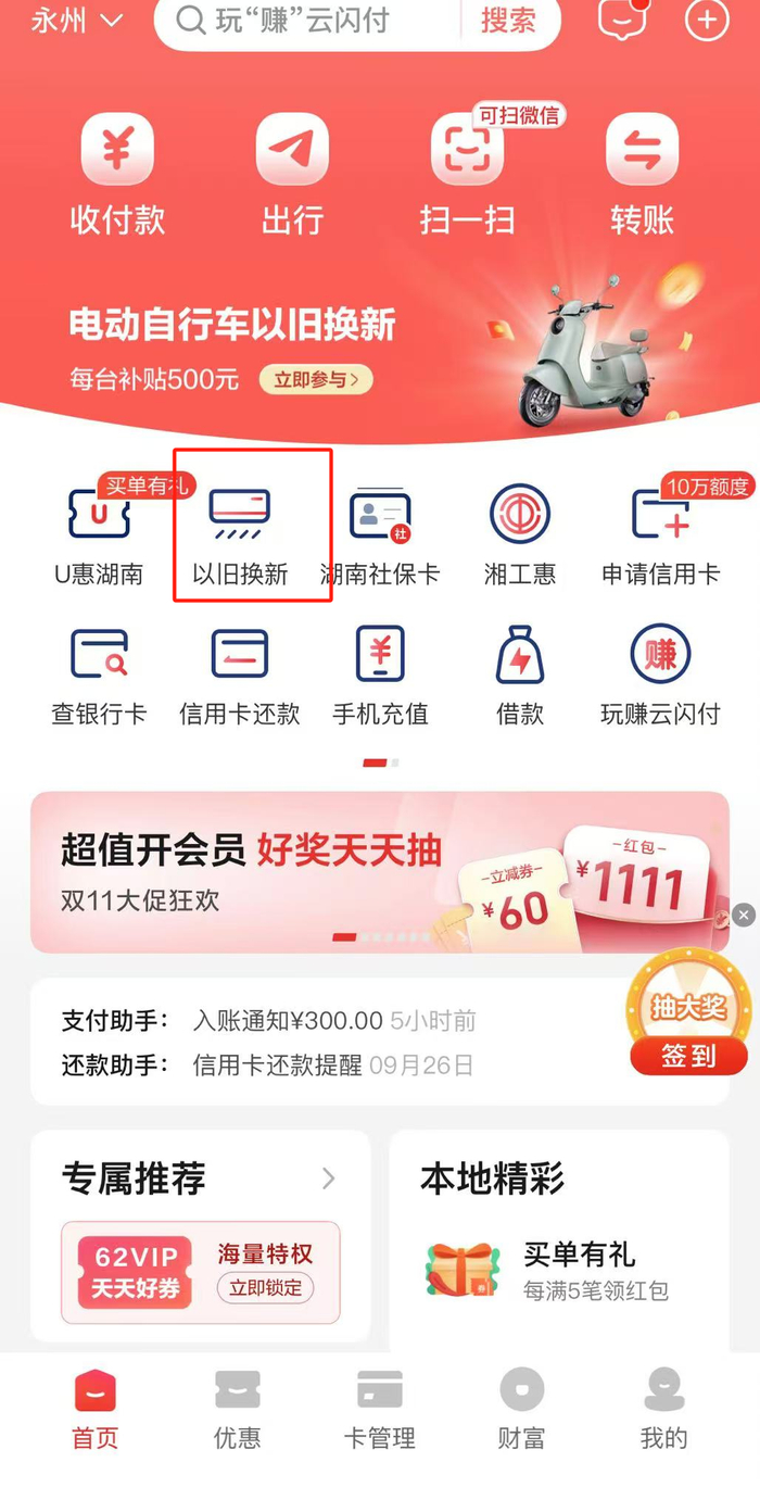 ⑴打开云闪付APP选择“以旧换新”专区。