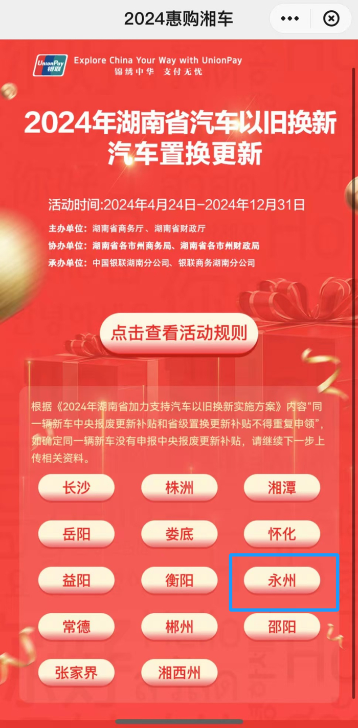 2024年永州以旧换新