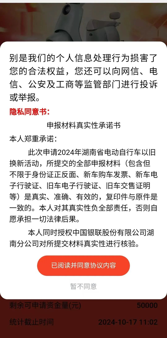 符合本轮置换更新补贴申领条件的个人,需在规定时间内(通常为2024年9月20日至2025年1月10日期间,具体时间可能因地区而异)登录云闪付平台“惠购湘车”补贴申请入口,提交申请并上传所需材料。