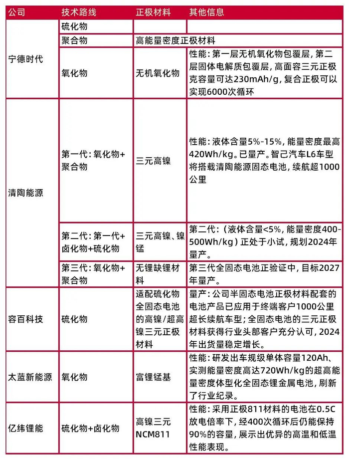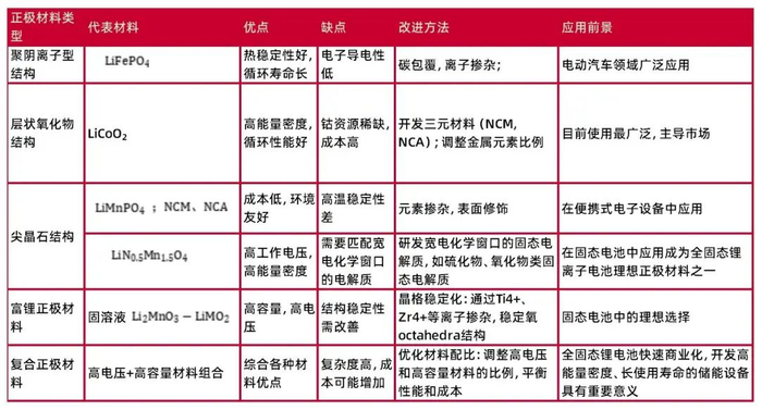 资料来源:《聚阴离子型钠离子电池正极材料的研究进展》,《锂离子电池三元层状氧化物正极材料的研究进展》,《新一代动力锂离子电池磷酸锰锂正极材料的研究现状与展望》,《高电压正极材料在全固态锂离子电池中的应用展望》,《高电压正极材料在全固态锂离子电池中的应用》,中国电气工程学报,《原子尺度揭示富锂和锰基氧化物正极材料中和的结构分布》,《的优化活化有效提高了x∙(1-x) 正极的倍率性能》,中国科学院,《氧离子导体表面包覆对正极材料性能的影响》,《固态电池关键材料体系发展研究》,《青岛能源所开发均质化正极材料实现全固态锂电池新突破》,山西证券研究所