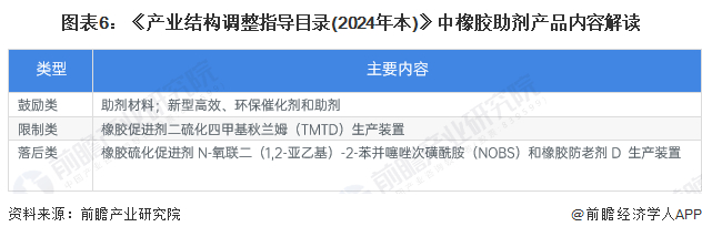 2023年12月,《产业结构调整指导目录(2024年本)》印发,其中助剂材料;新型高效、环保催化剂和助剂被列入鼓励类产品,橡胶促进剂二硫化四甲基秋兰姆(TMTD)生产装置被列入限制类,橡胶硫化促进剂N-氧联二(1,2-亚乙基)-2-苯并噻唑次磺酰胺(NOBS)和橡胶防老剂D 生产装置被列入落后类。