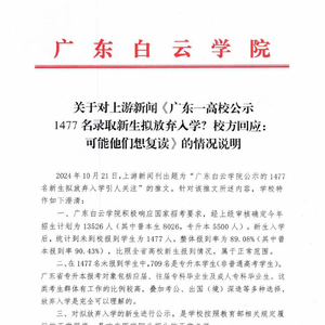 此外,广东白云学院发布的情况说明称,广东省专升本报考对象包括应届、往届专科毕业生及成人专科毕业生。这类考生群体有工作的比例较高,叠加考公、出国(境)深造等多种选择,放弃入学是完全可以理解的。