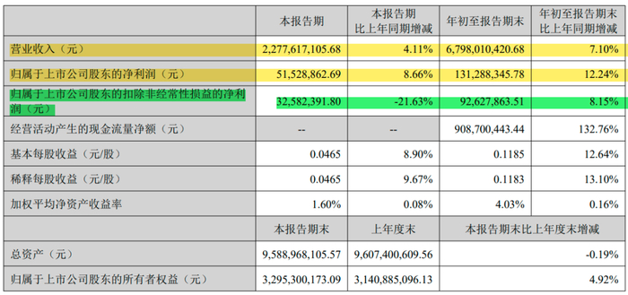 归母净利润5152.89万元,同比增长8.66%,相比去年的同比减少超4成,有大幅改善;